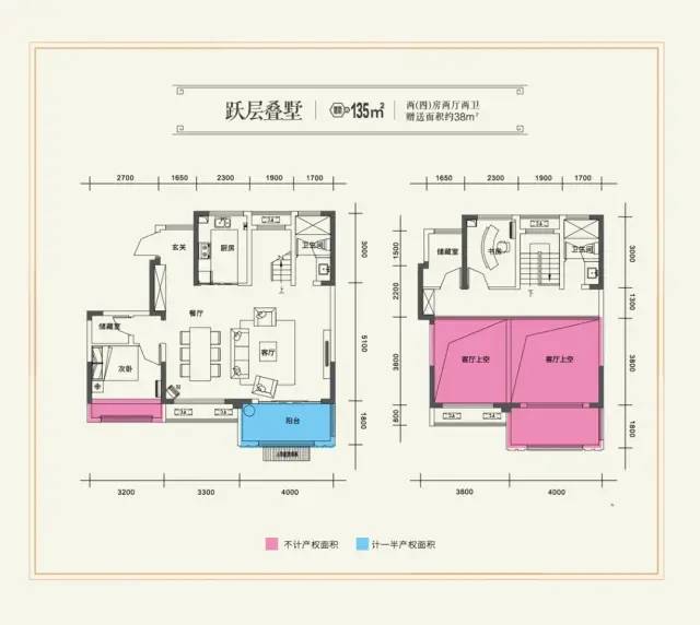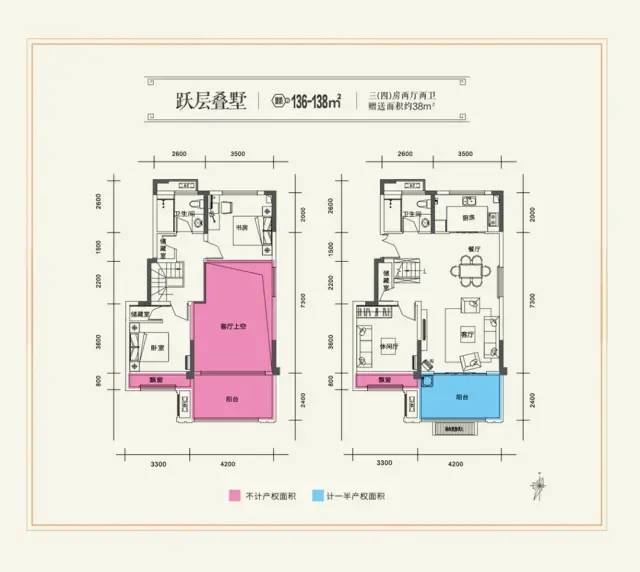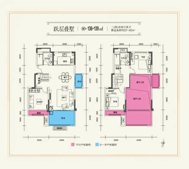 建筑面積約136㎡(改造后實(shí)得180㎡)上下雙境疊墅